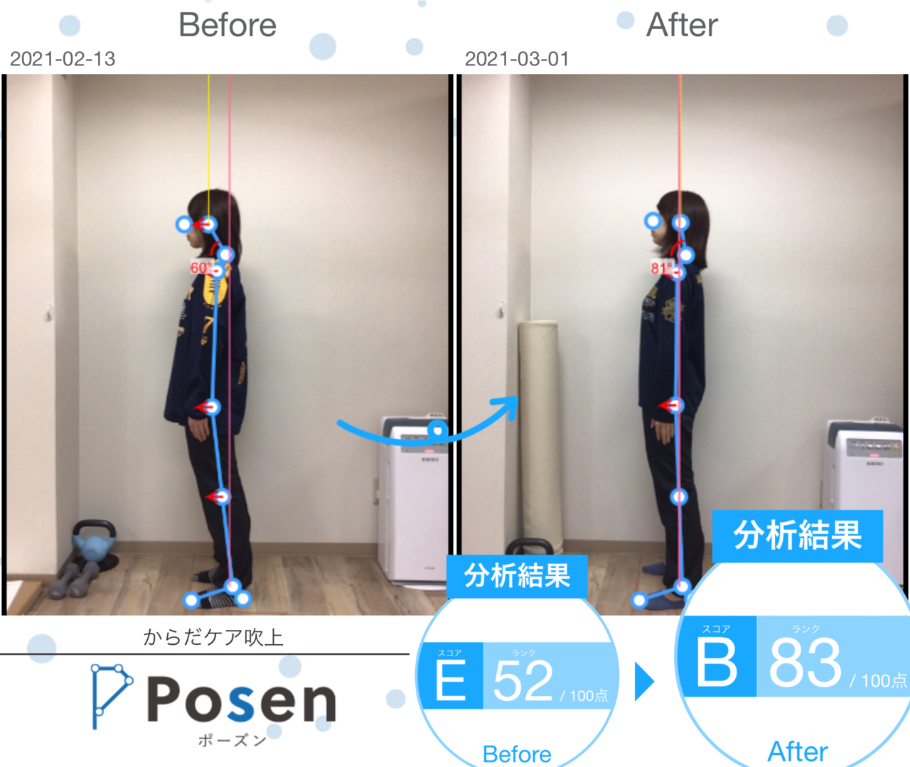 最新のAI姿勢分析を用い、